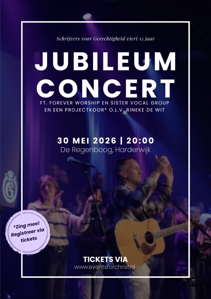 Een hartverwarmend meezingconcert van de Schrijvers voor Gerechtigheid liveband samen met Forever Worship en Sisters Vocal Group. Je wordt met open armen ontvangen!Kom je ook? Je kunt hier je tickets bestellen!